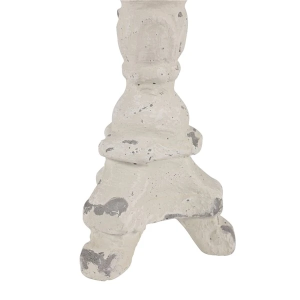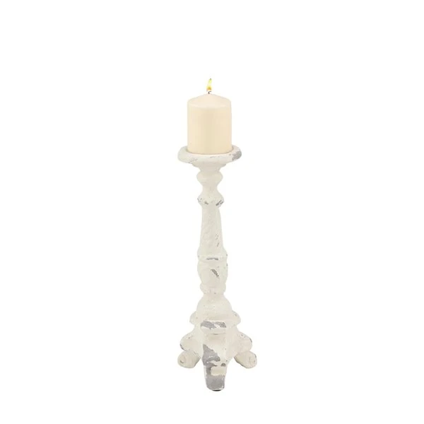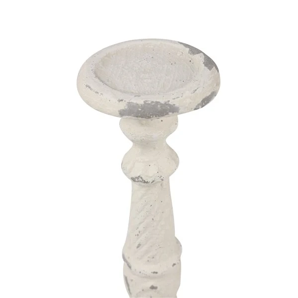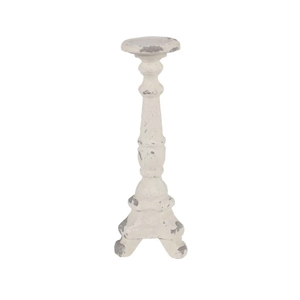 - A very textural decorative candle holder with distressed and weathered antique white paint with decorative chipping
