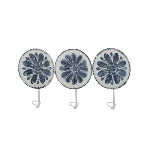 Grayson Lane 1- Hook Decorative White and Blue Iron Wall Hooks – Set of 3