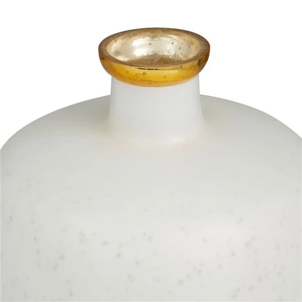 - This glass vase highlights white and gold finishes that create an elegant appeal in your interior