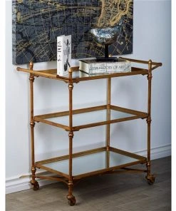 Grayson Lane Brown Metal Base with Galvanized Iron Top Kitchen Carts – 39.25-in x 22-in