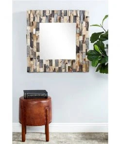 Grayson Lane 31.5-in x 31.5-in Square Brown Framed Wall Mirror