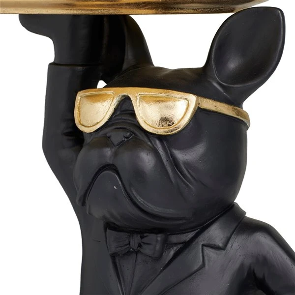 - A dog waiter sculpture with gold and black finishes that can get the attention of your guests