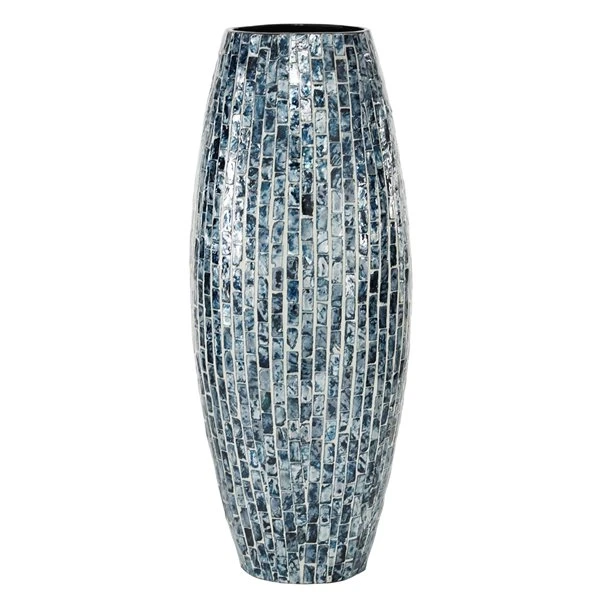 - This round vase is made of a windowpane oyster shells and MDF structure