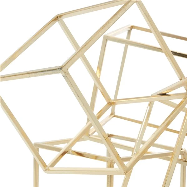 - Large geometric metal sculpture made from solid iron in a metallic gold finish