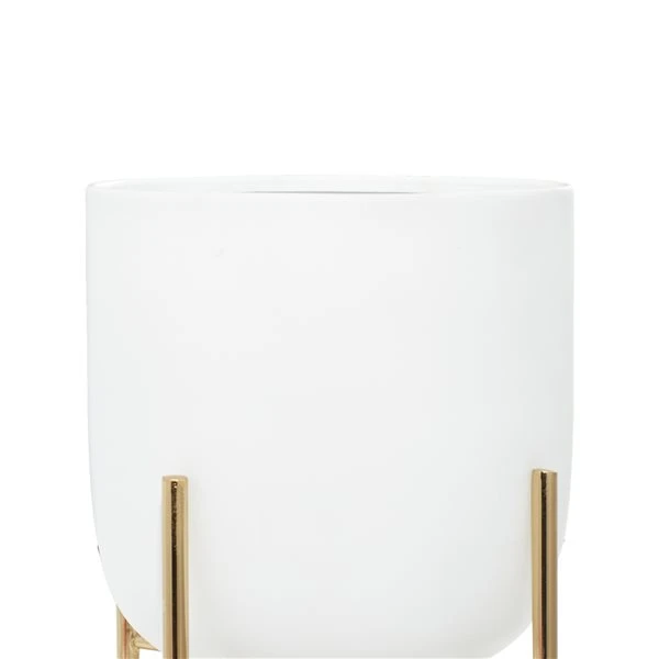 - Minimalist cup shape planters elevated by X-shaped iron stands