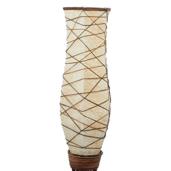 - Rustic-themed floor lamp which fits a coastal, Asian or modern rustic interior