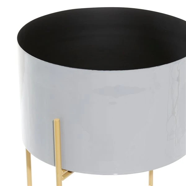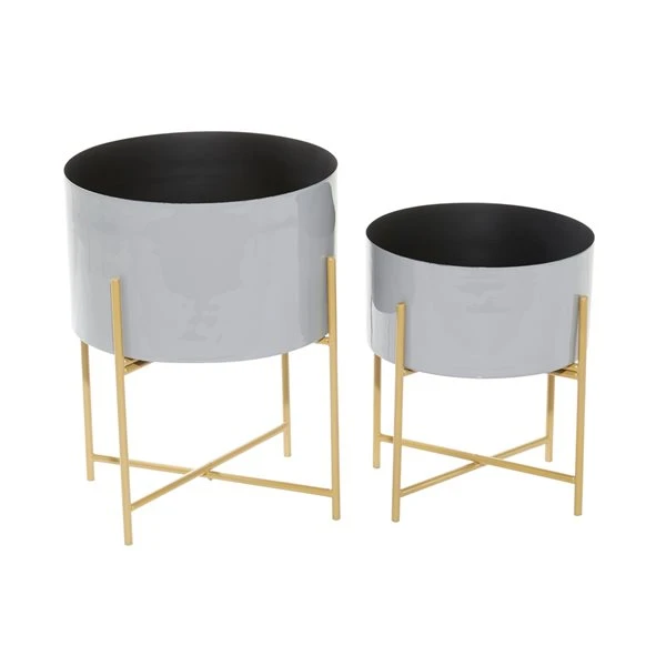 - Smooth, glossy grey planters with gold plant stands