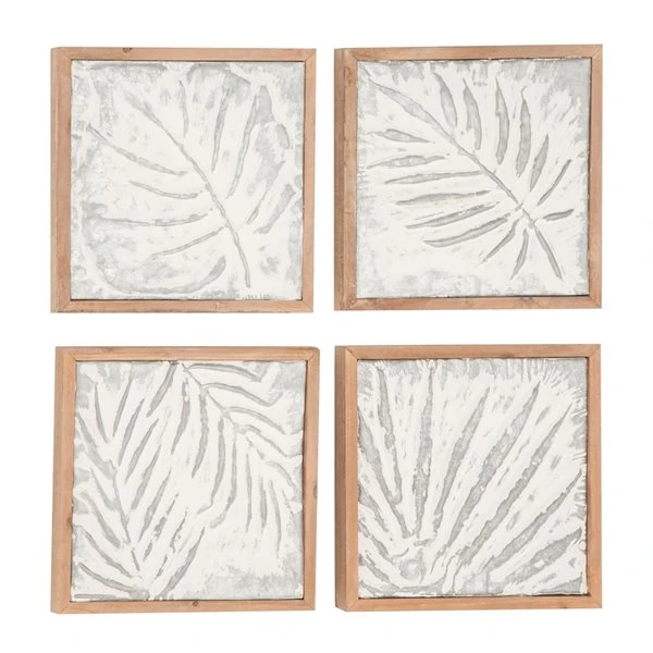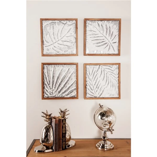 Grayson Lane 11-in x 11-in Brown Metal Farmhouse Floral Wall Decor – Set of 4