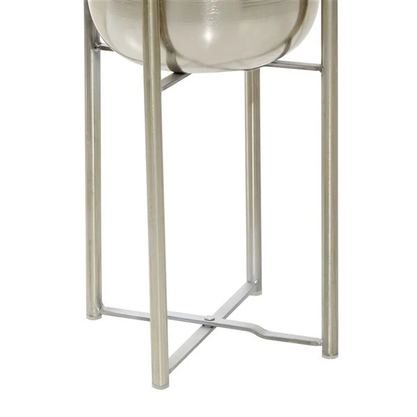 - Each cylindrical planter with a rounded base elevates from the base with an X-shaped stand
