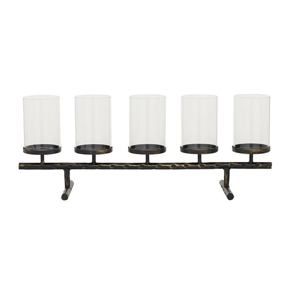 - This table candelabra holds five votive candles