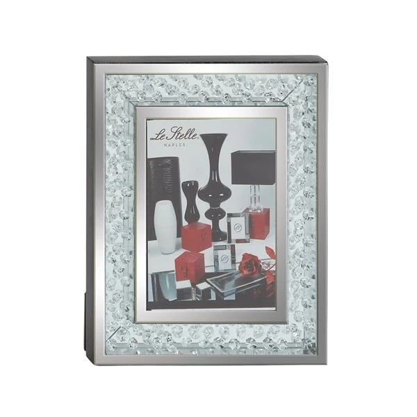 - Features a rectangular body and an inner bevelled glass box frame with polished silver linings