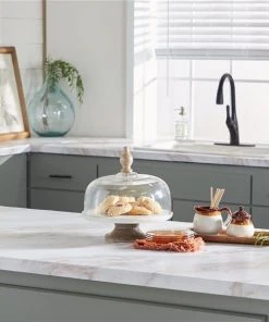 Grayson Lane 12-in x 12-in Contemporary Cake Stand with Cloche in White Glass and Iron