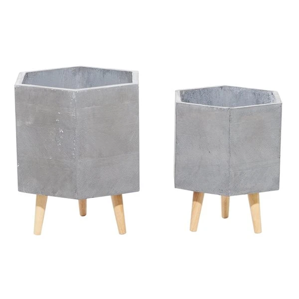 - This set features hollow hexagonal planters with splayed tripod wooden base