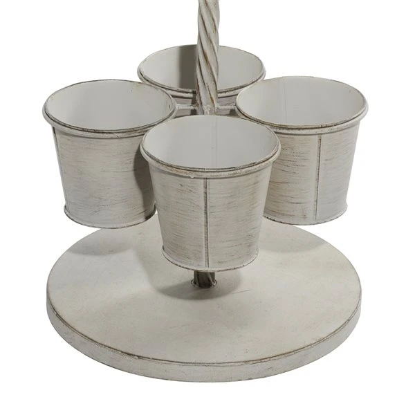 - Three tiers of pots hang off a twisted metal pole