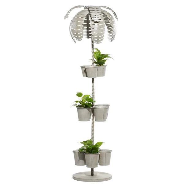 Grayson Lane 15.5-in W x 55.25-in H Contemporary Tropical Grey Metal Tree-Shaped 3-Tier Planter – Set of 1