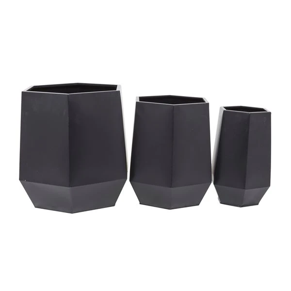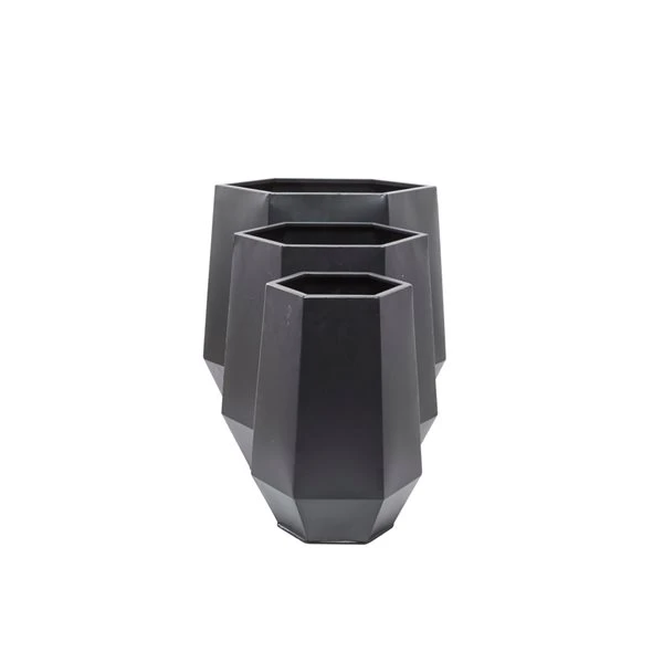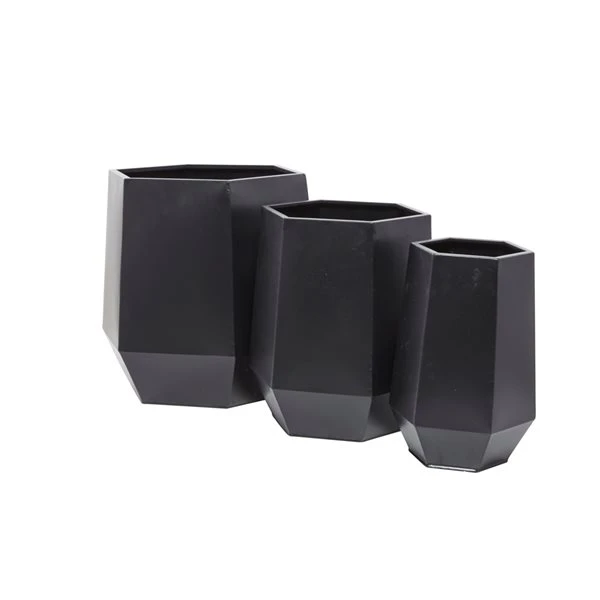 Grayson Lane 15.75-in W x 19.63-in H Modern Black Geometric Metal Round Planters – Set of 3
