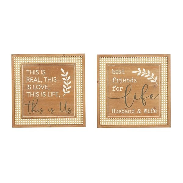 - Each wall decor features a natural brown wood frame