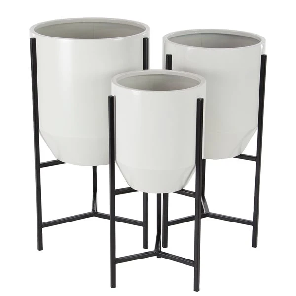 Grayson Lane 15-in W x 26-in H Modern White/Black Metal Round Planters – Set of 3