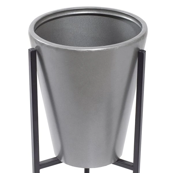 Grayson Lane 15-in W x 28-in H Modern Metallic Grey Metal Round Planters – Set of 3