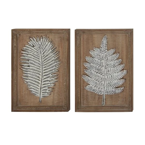 Grayson Lane 15-in x 20-in Brown Wooden Contemporary Floral Wall Decor – Set of 2