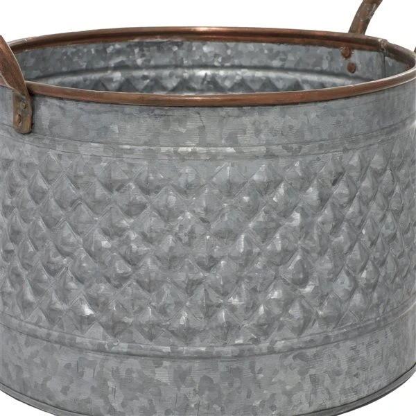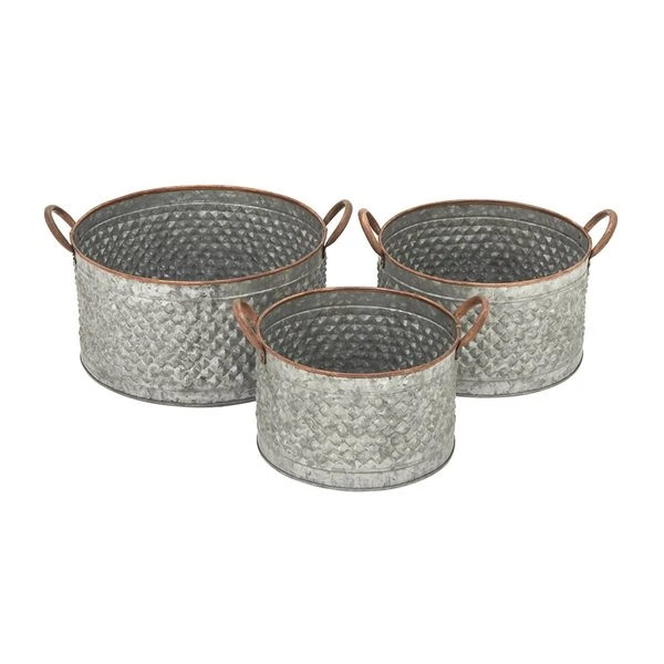 Grayson Lane 16-in W x 10-in H Farmhouse Grey Metal Round Planters with Handles – Set of 3