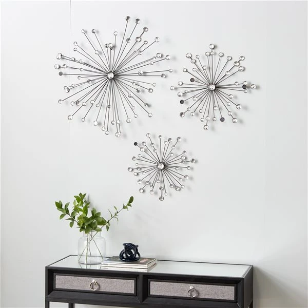 - Comes in 3 staggered sizes and each has a black finish with sparkly, clear faux crystal accents