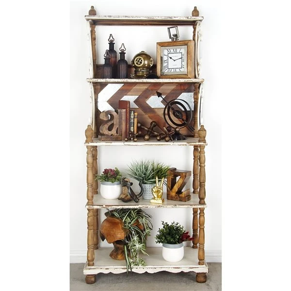 Grayson Lane 21-in x 65-in White Wood 5-Tier Traditional Shelving Unit