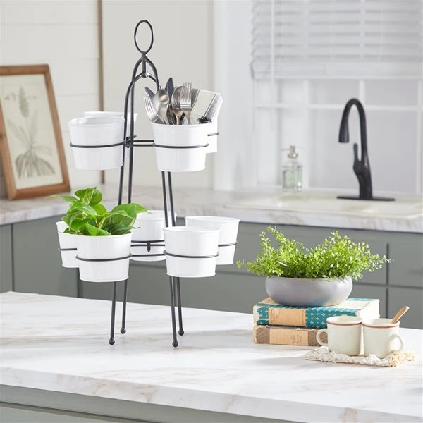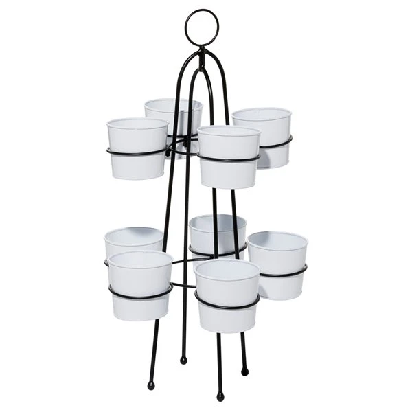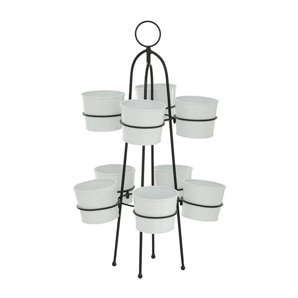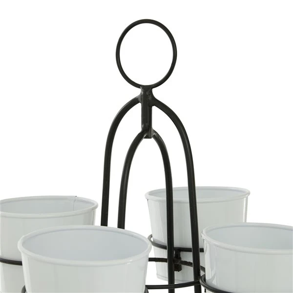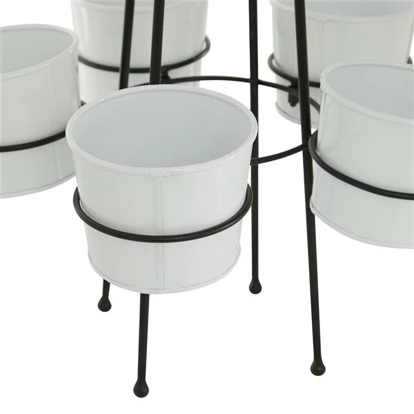 - Glossy white planters and black stand