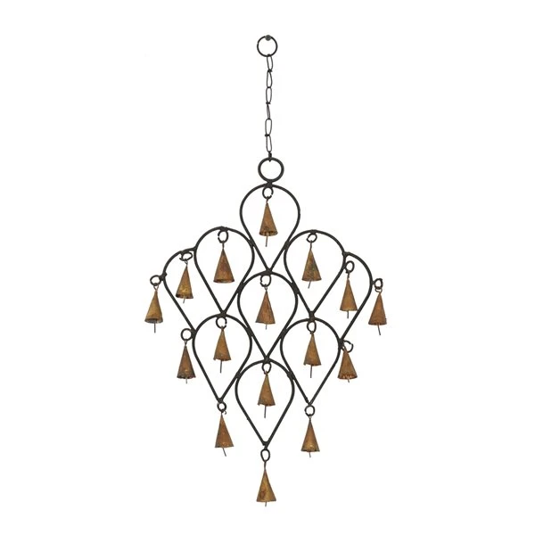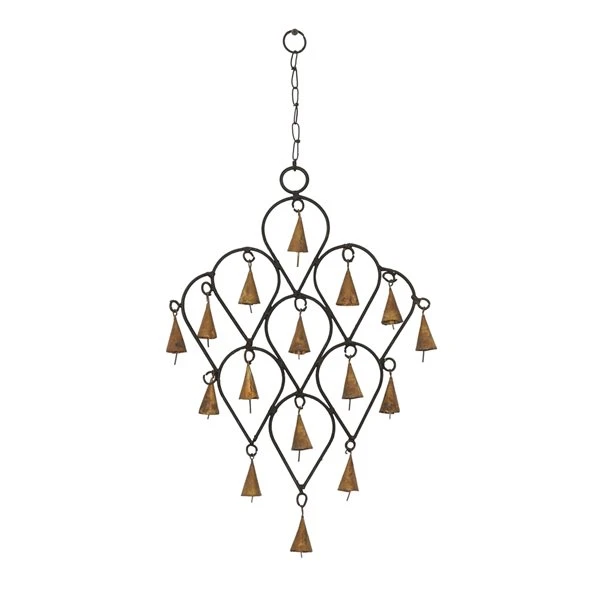 Grayson Lane 17-in Bohemian Black/Brass Metal Cone-Shaped Bell Wind Chime with Reversed Teardrop Pattern