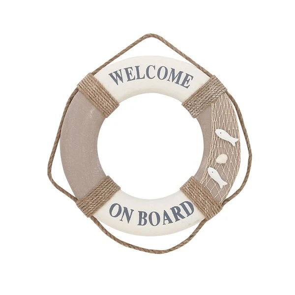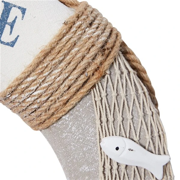 - Designed with fish and seashell illustrations, a fishing net and brown rope wrapped around
