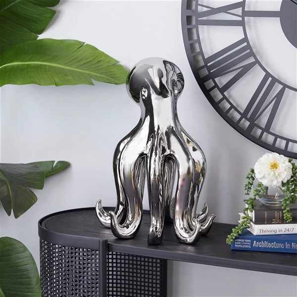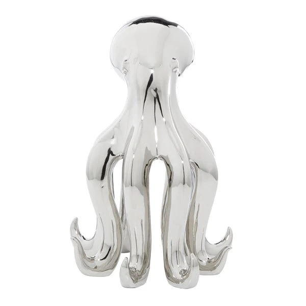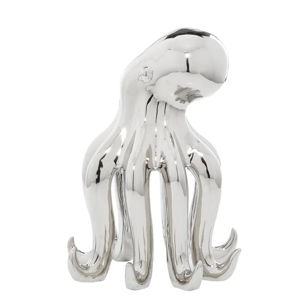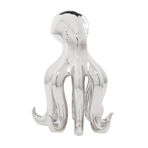 GRAYSON LANE 17 In. x 11 In. Glam Octopus Sculpture Silver Porcelain