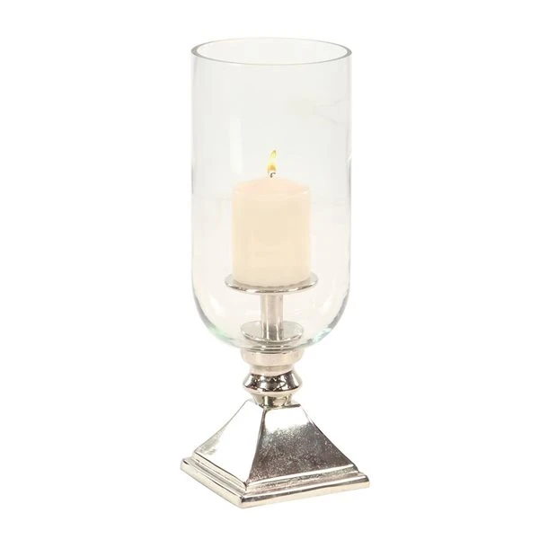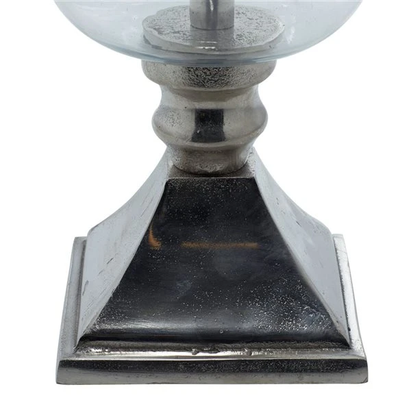 - Add instant warmth and inviting ambiance to your home with this silver aluminum and glass candle holder that is a great addition to contemporary interior.