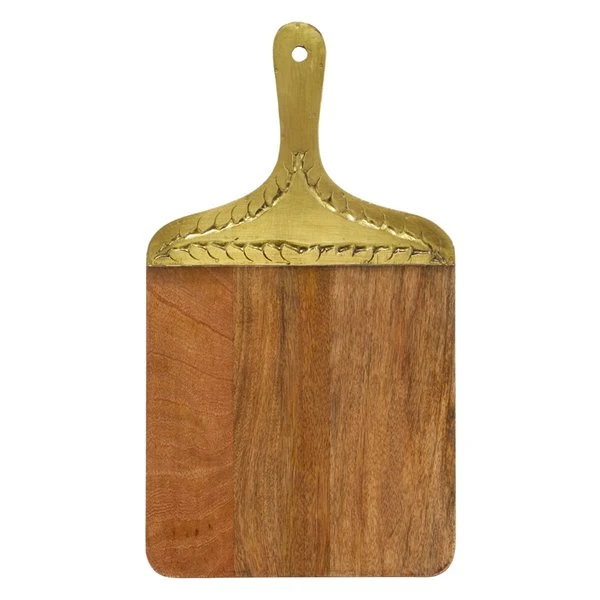 - Striking gold finish on the handle and a warm brown finish on the board’s surface