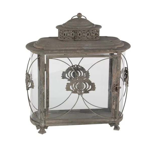 GRAYSON LANE 18 In. x 15 In. Rustic Candle Holder Lantern Brown Iron
