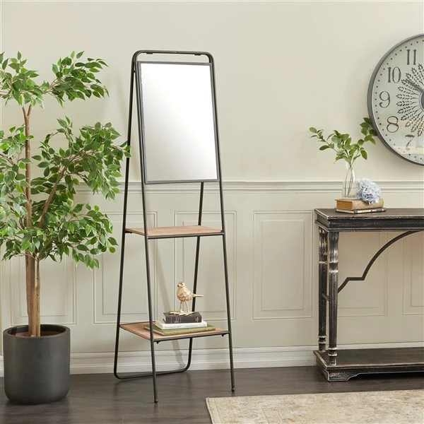 - Display this wall mirror and shelf combination on an empty corner for an easy boost in style and elegance