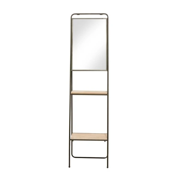 - Features a rectangular mirror and 2-tiers of shelf surfaces