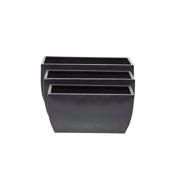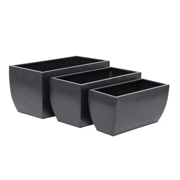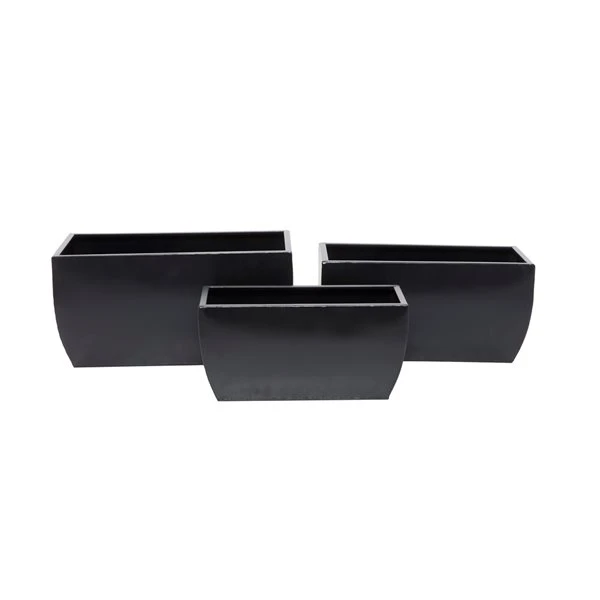 - Each of these 3 planters feature a trough form with curved sides and a wider mouth than its base