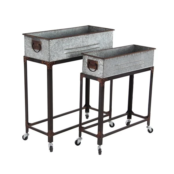Grayson Lane 19-in W x 29-in H Farmhouse Grey Metal Rectangle Planters on Wheels – Set of 2