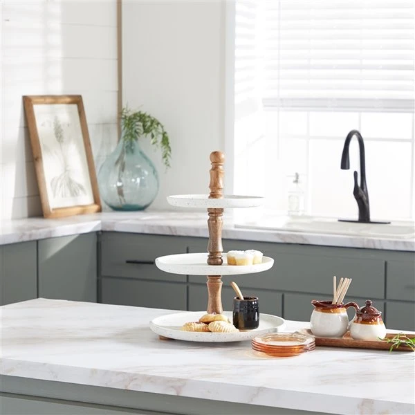 Grayson Lane 19-in x 14-in Contemporary 3-Tier Tray Stand in White Wood