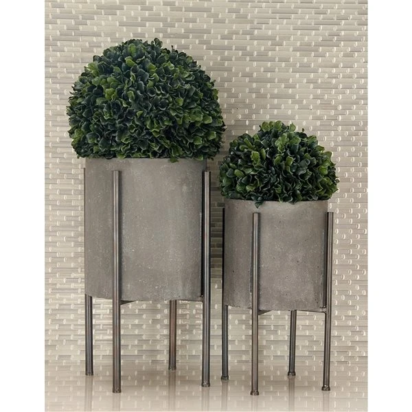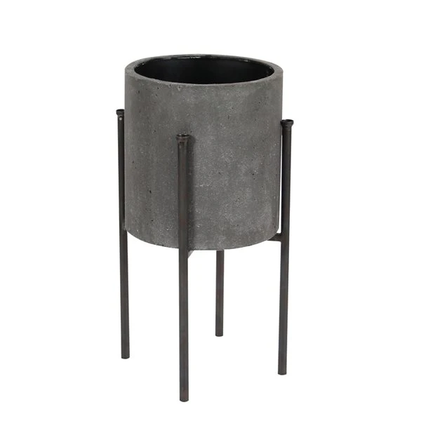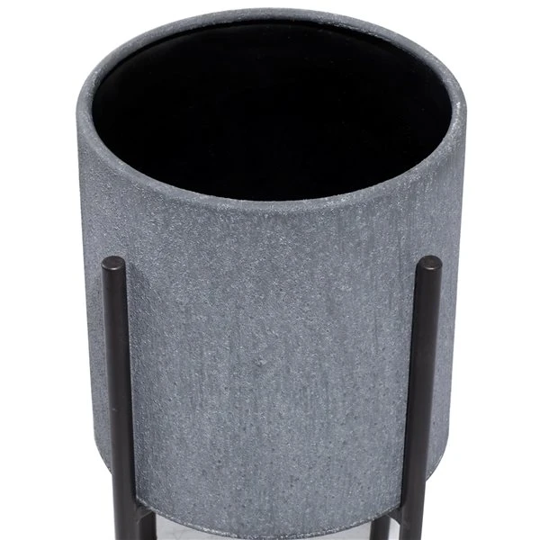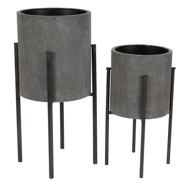 - This set of planters features a wide-mouthed cylinder shape and are elevated by 4 iron rod-style legs