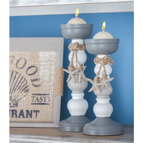 Grayson Lane 2 Candle Grey Wood Pillar Coastal Candle Holder – Set of 2