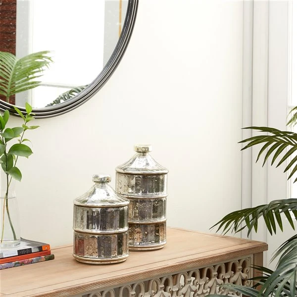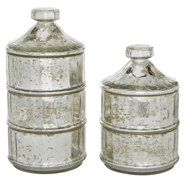 - This vintage style inspired design grey glass jar set will add a timeless appeal in your living room when displayed on tables or shelves