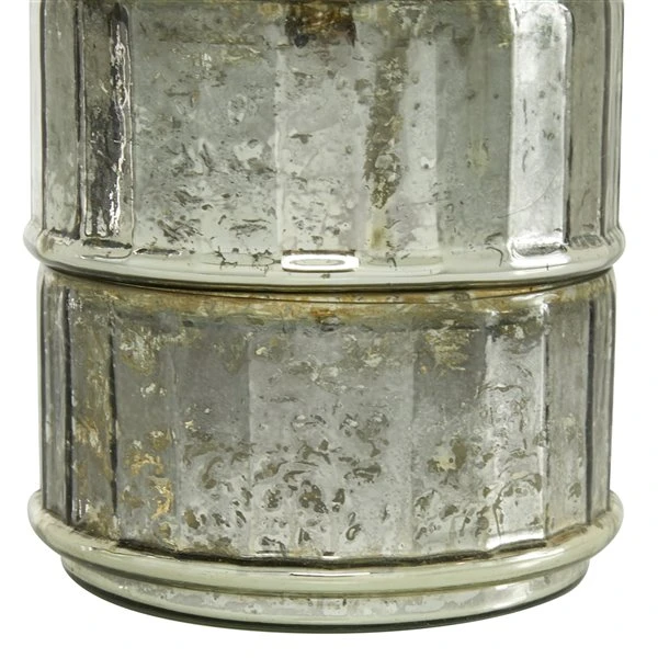 - Distressed glass look gives off an antique feel with its silver polished finish