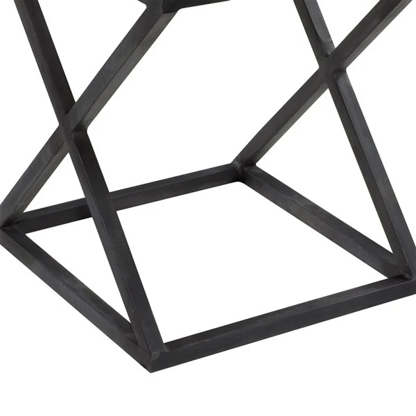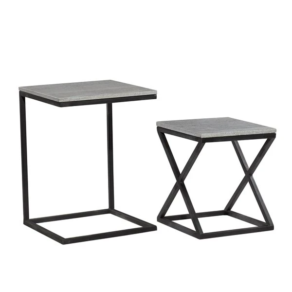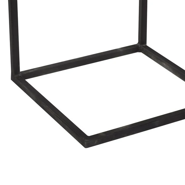 - This black metal square marble top side table set features an interesting, physics-defying design with a black metal frame and grey marble top design