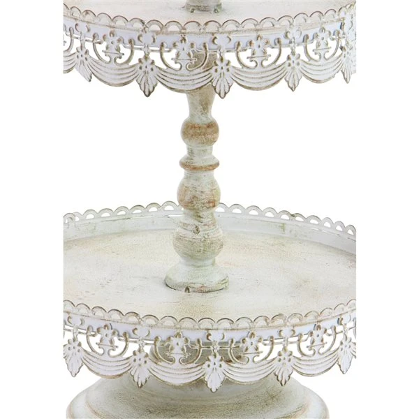 - 2 round shape trays with a lace pattern design and a spade ring handle