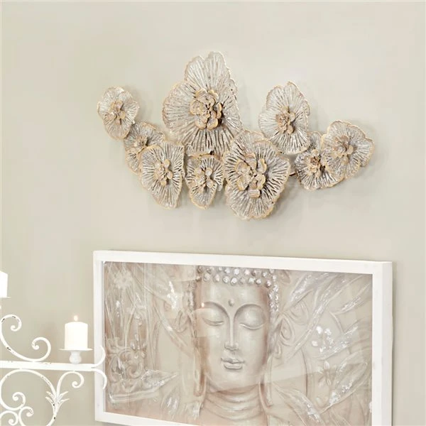Grayson Lane 20-in H x 45-in W Grey Metal Transitional Floral and Botanical Wall Accent