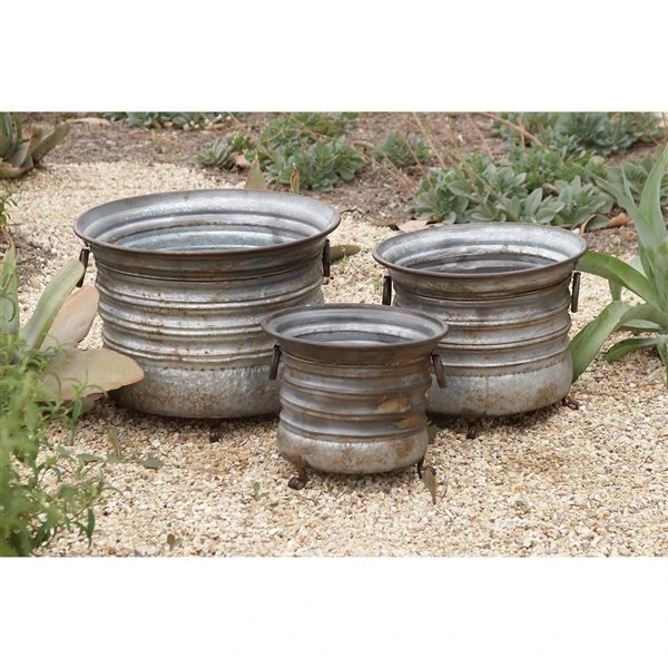 Grayson Lane 20-in W x 15-in H Farmhouse Grey Metal Round Planters – Set of 3