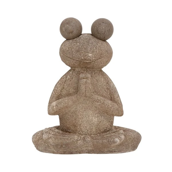 - Seated frog statue made from polystone in a brown stone-like finish