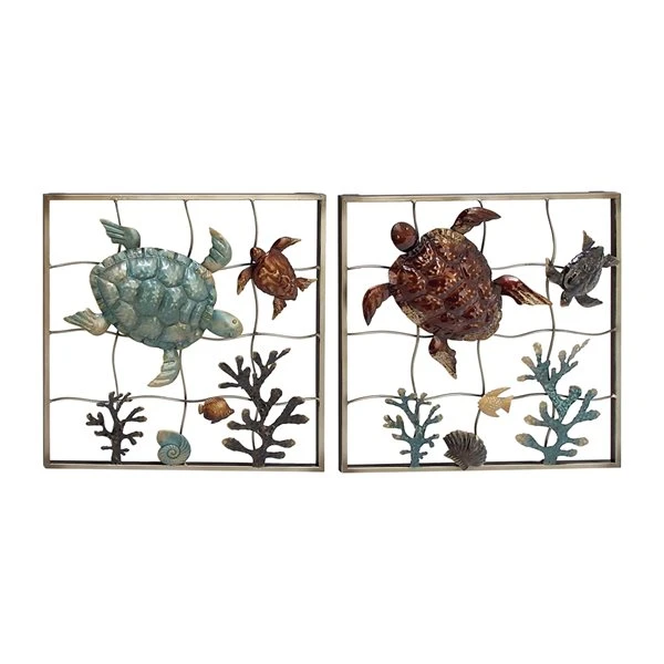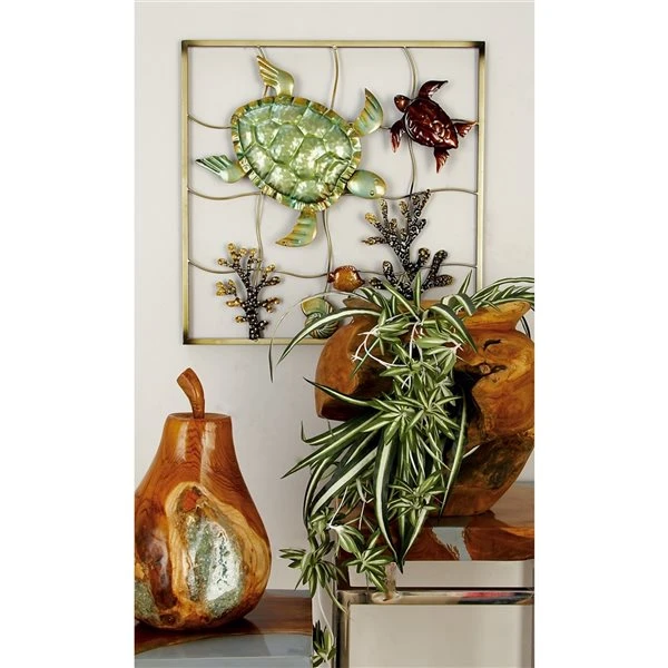 Grayson Lane 20-in x 20-in Gold Metal Coastal Sea life Wall Decor – Set of 2