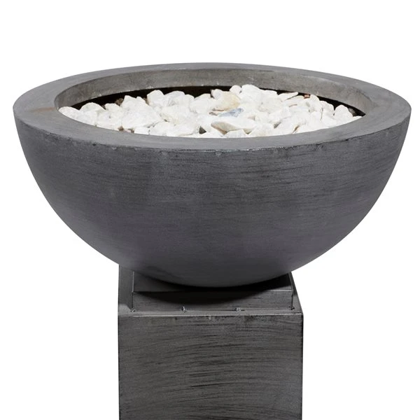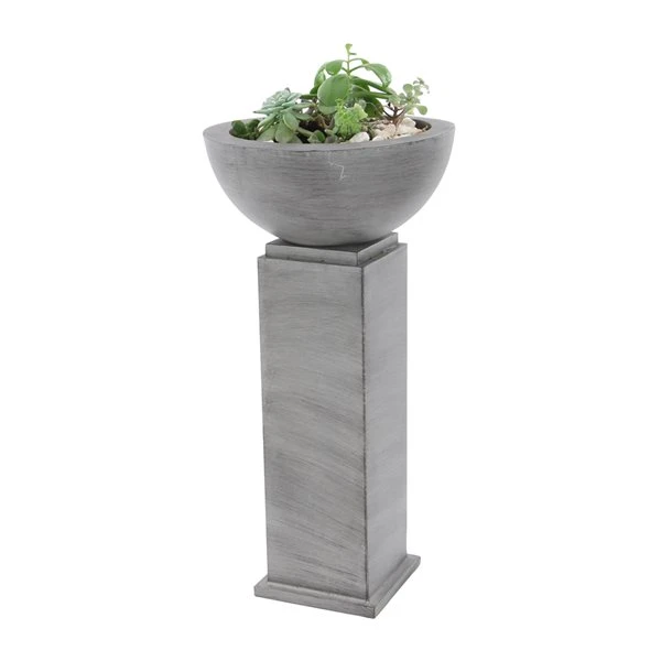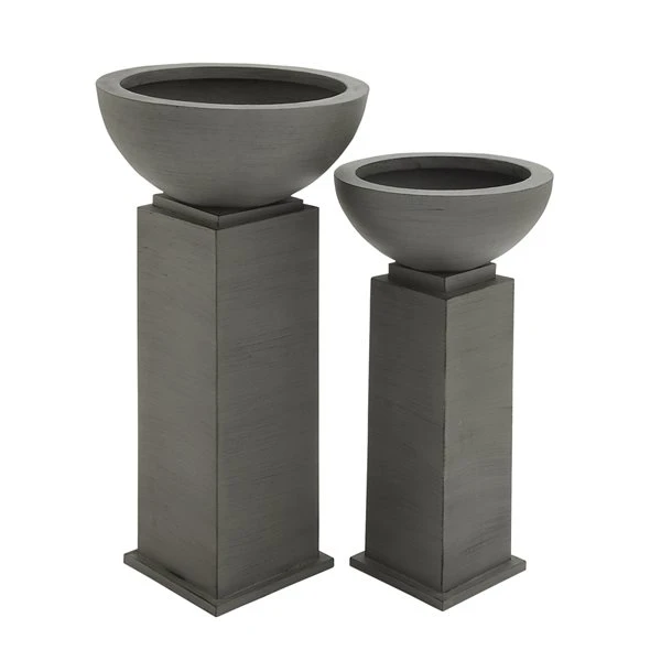 - The bowl-shaped planters attach to square-shaped columns, forming tall floor plant holders